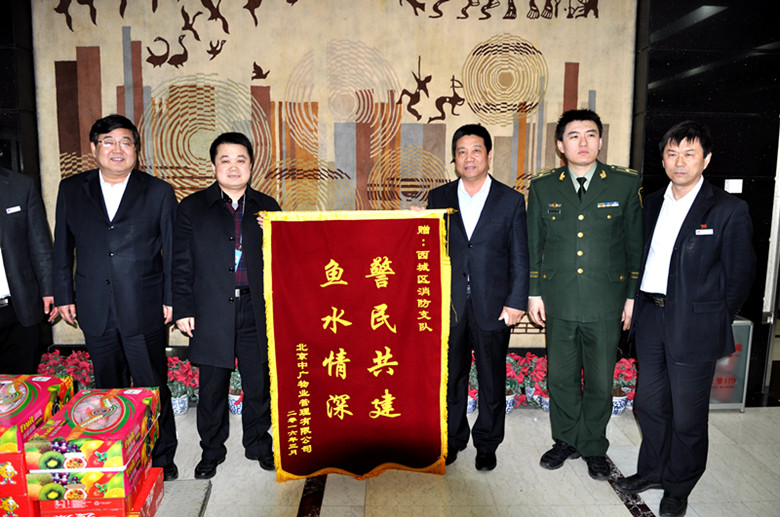 3月9日,公司總經(jīng)理黃建偉、副總經(jīng)理程建軍、公司技術(shù)總監(jiān)兼音像資料館項(xiàng)目部經(jīng)理李長(zhǎng)青代表公司對(duì)為確?!皟蓵?huì)”期間安全,臨時(shí)進(jìn)駐音像資料館大廈備勤的西城區(qū)消防支隊(duì)的武警官兵進(jìn)行了慰問。黃總代表公司向消防官兵贈(zèng)送了“警民共建 魚水情深”錦旗和慰問品。