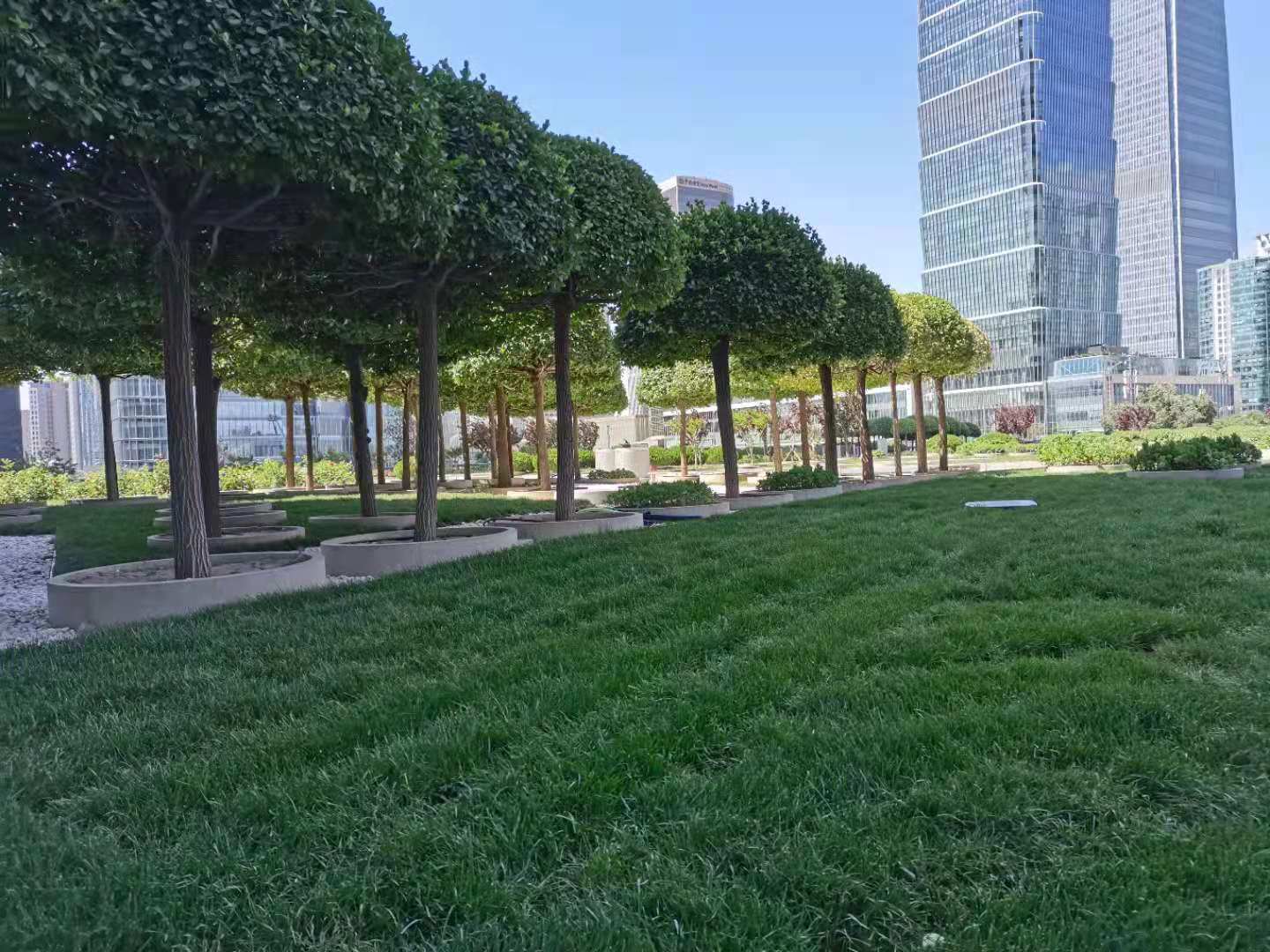 為確保草坪改造達到預(yù)期效果,自接到任務(wù)后,公司物資部、園林綠化子公司、央視光華路項目部密切配合,制定詳細工作方案,按照氣候特點、草種品類、運輸清運等需求,物資部協(xié)同園林綠化子公司多次深入位于順義、昌平等草坪種植基地調(diào)研考察,結(jié)合草坪播種情況、灌溉能力等因素,選用冷暖季型草坪混播,達到無論在高溫還是嚴寒的環(huán)境下,都能夠保持常青的狀態(tài),觀賞價值較高。
