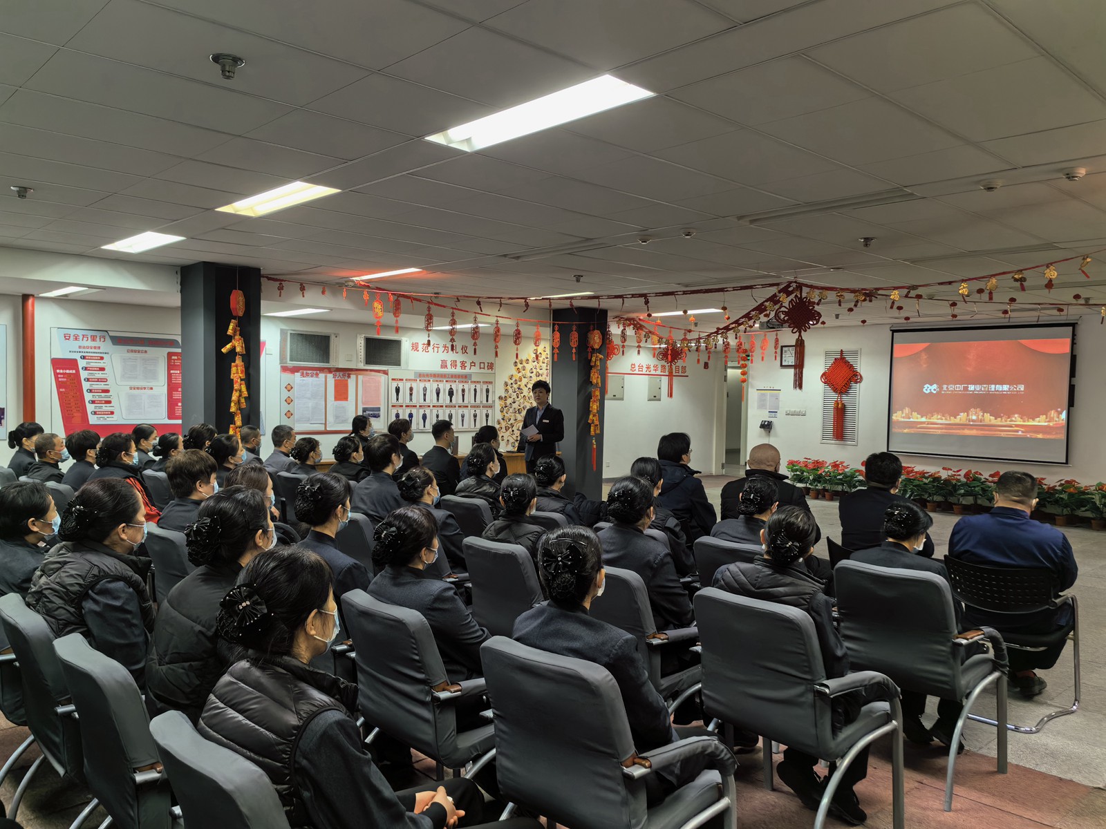 2024年2月8日,北京中廣物業(yè)管理有限公司召開(kāi)2023年度總結(jié)表彰大會(huì)。此次大會(huì),通過(guò)音像資料館主會(huì)場(chǎng)及各項(xiàng)目分會(huì)場(chǎng)觀看總結(jié)表彰大會(huì)視頻的方式進(jìn)行,公司各項(xiàng)目根據(jù)實(shí)際工作情況,通過(guò)電腦、投影、手機(jī)等視頻設(shè)備,積極有序組織全體員工同步觀看。