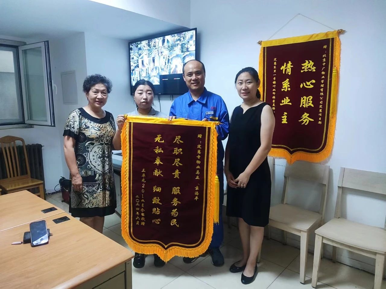 近日,北京中廣物業(yè)管理有限公司總臺(tái)住宅項(xiàng)目部一位業(yè)主送來(lái)一面 “盡職盡責(zé)、服務(wù)為民、無(wú)私奉獻(xiàn)、細(xì)致貼心”錦旗,對(duì)定慧項(xiàng)目工作人員在業(yè)主危難時(shí)刻施以援手的暖心服務(wù)表示衷心的感謝。