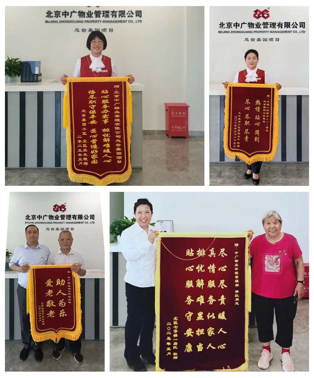 近日,中廣物業(yè)公司總臺嘉園項目接連收到業(yè)主贈送的錦旗,熱情贊揚公司服務團隊的暖心服務。一面面錦旗不僅代表著業(yè)主的認可,更承載著公司服務團隊與業(yè)主之間那份深厚的情誼。