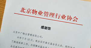 日前,北京中廣物業(yè)管理有限公司收到北京物業(yè)管理行業(yè)協(xié)會的感謝信——感謝公司晏春梅、董婕2位同志擔(dān)任大會志愿者,協(xié)助保障北京物業(yè)管理行業(yè)協(xié)會第五屆會員大會順利召開。...